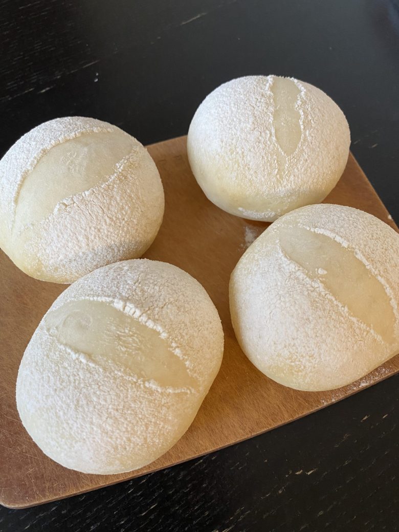 ※今回は大小のサイズで作りたかったので、生地量790gを6分割(1つ130g)すると、↓こうなりました。