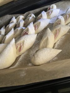 ◆閉じ目を下にし、鉄板へ並べて二次発酵します。